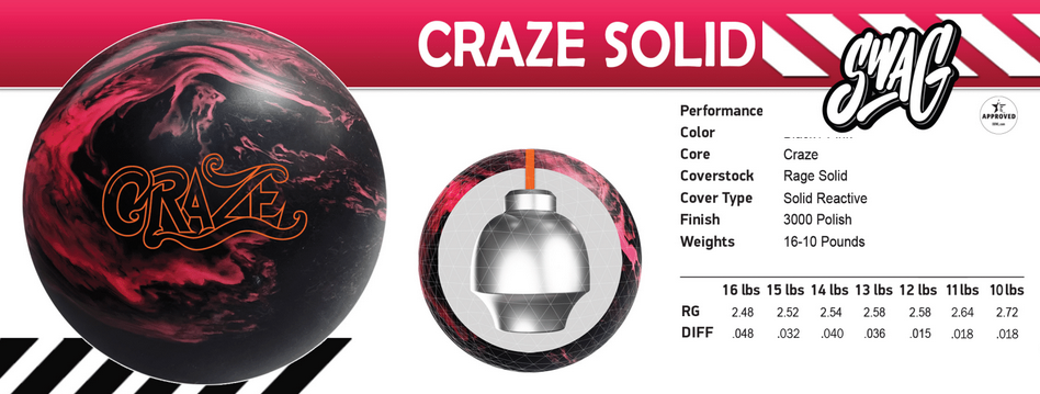 Introducing Craze Pearl and Craze Solid, the newest members of SWAG’s Primary Performance line. Engineered with our advanced “Rage” base coverstock, perfected through extensive testing, these balls are designed to deliver top-tier performance. The Craze Solid thrives on heavier oil transition or when you need control, while the Craze Pearl is made for tough transition on lighter oil, offering unparalleled versatility. Combining exceptional adaptability with unbeatable value, the Craze line is your go-to choice for premium performance at an incredible price.