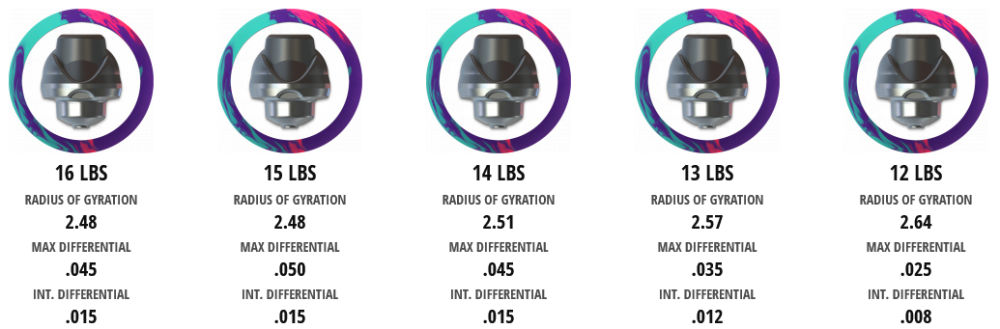The insanely tunable Overload™ asymmetrical core is the most versatile core in the MOTIV line. It delivers a combination of a low RG, moderate differential, and strong intermediate differential, slotting perfectly below the Predator™ V2 and Apex Predator™ cores featured in the Jackal® series. The Overload core lets the ball driller dramatically raise or lower the primary differential depending on layout. That means you can control total flare in a meaningful way.